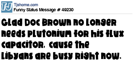 - # 76111 Glad Doc Brown no longer needs plutonium for his flux capacitor, ‘cause the Libyans are to busy having a party.