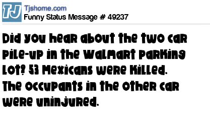 - # 18124 Did you hear about the two car pile-up in the Walmart parking lot? 50 Mexicans died