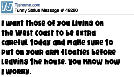X says I want those of you living on the West Coast to be extra careful today and make sure to put on your arm floaties before leaving the house. You know how I worry.