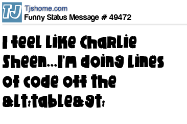 X I feel like Charlie Sheen...I'm doing lines of code off the <table>