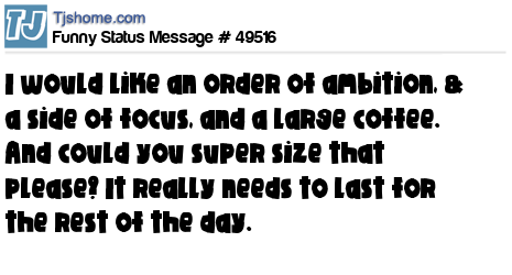 X is I would like an order of ambition, & a side of focus, and a large coffee. And could you super size that please? It really needs to last for the rest of the day.