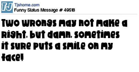 X is Two wrongs may not make a right, but damn, sometimes it sure puts a smile on my face!