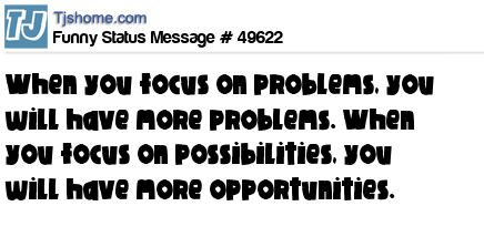 X is when you focus on problems, you will have more problems. When you focus on possibilities, you will have more opportunities.