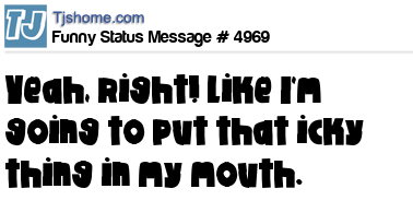X says Yeah, right! Like I'm going to put that icky thing in my mouth.