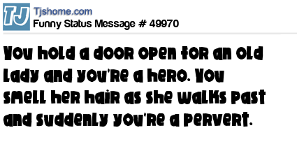 X  You hold a door open for an old lady and you're a hero. You smell her hair as she walks past and suddenly you're a pervert.