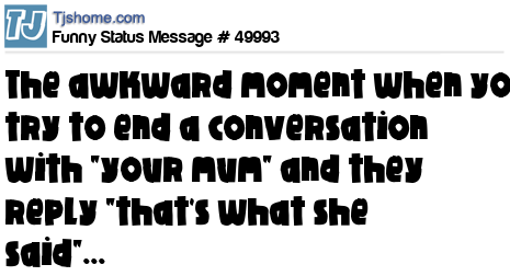 X The awkward moment when you try to end a conversation with "your mum" and they reply "that's what she said"...