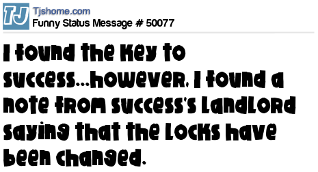 X says I found the key to success...however, I found a note from success's landlord saying that the locks have been changed.