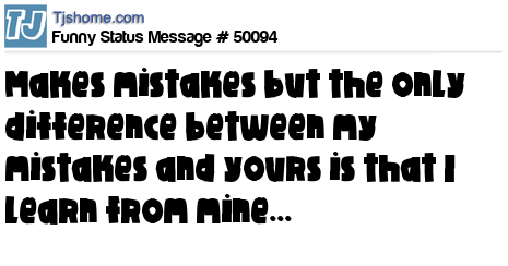 - # 60471 Ive made mistakes;been a mistake;met/been involved with some mistakes;learned from mistakes;will make other mistakes-I'm not perfect;but dont mistake me for an idiot.!!!
