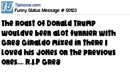 X is The roast of Donald Trump wouldve been alot funnier with Greg Giraldo mixed in there I loved his jokes on the previous ones.... R.I.P Greg