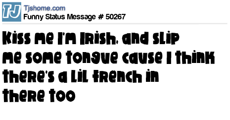 - # 165531 Kiss me I'm Irish, put a little tongue in it, I'm French too.