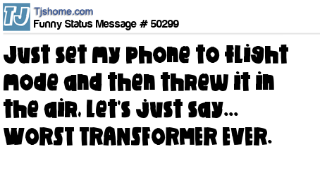 - # 103973 I put my phone on "Airplane Mode" and threw it in the air! ...Worst transformer ever.