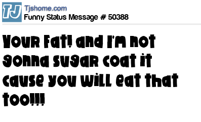 - # 88953 your fat.......... and I'm not going to sugar coat it cause you would prolly eat that also.