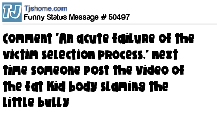 X comment "An acute failure of the victim selection process." next time someone post the video of the fat kid body slaming the little bully
