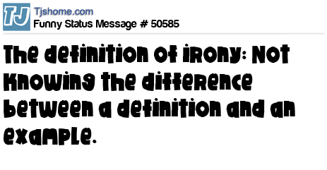 X The definition of irony: Not knowing the difference between a definition and an example.