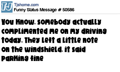 - # 7965 You know, somebody actually complimented me on my driving today. They left a little note on the windscreen, it said 'Parking Fine.