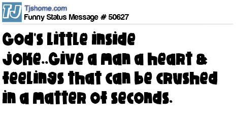 X is God's little inside joke..Give a man a heart & feelings that can be crushed in a matter of seconds.