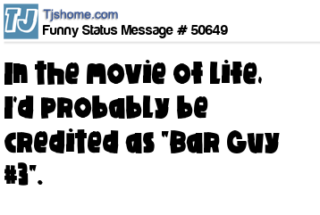 X In the movie of life, I'd probably be credited as "Bar Guy #3".