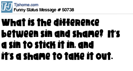 - # 15687 The difference between a sin and shame; It is a sin to put it in; It is a shame to pull it out!