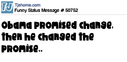 - # 17438 Obama promised change.If we are lucky we will have a few pennies from every dollar earned, thats the change we get. makes me wanna get up every day and go to work knowing I am funding health care for the lazy Americans who wont work. Only in America, WOW!