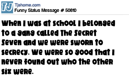 - # 197029 When I was at school I belonged to a gang called d Secret 7.we swore to secrecy. We were so good that I never found out who the other 6 were.