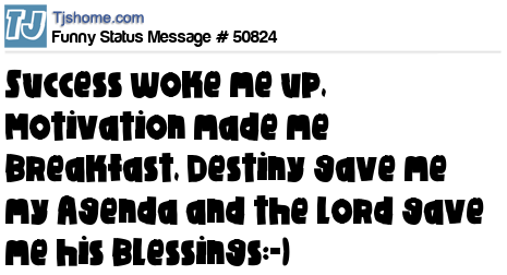 X says Success woke me up, Motivation made me Breakfast, Destiny gave me my Agenda and the Lord gave me his Blessings:-)