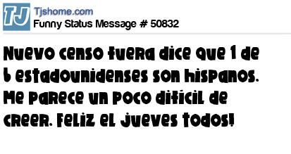 X says Nuevo censo fuera dice que 1 de 6 estadounidenses son hispanos. Me parece un poco difícil de creer. Feliz el jueves todos!