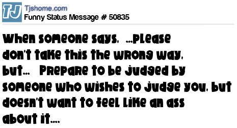 X When someone says, “…please don't take this the wrong way, but…” Prepare to be judged by someone who wishes to judge you, but doesn't want to feel like an ass about it….