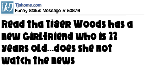 X read tha Tiger Woods has a new Girlfriend who is 22 years old...does she not watch the news