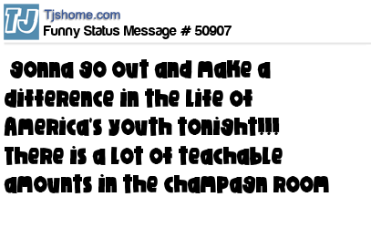 X is  gonna go out and make a difference in the life of America's youth tonight!!!  There is a lot of teachable amounts in the champagn room