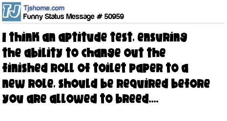 X I think an aptitude test, ensuring the ability to change out the finished roll of toilet paper to a new role, should be required before you are allowed to breed....