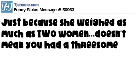 X Just because she weighed as much as TWO women...doesn't mean you had a threesome