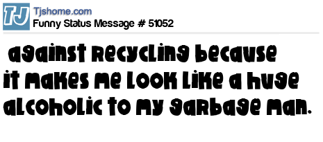 - # 102317 I'm against recycling because it makes me appear to be a huge alcoholic to my garbage man.