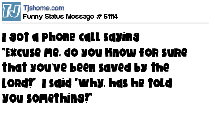 X I got a phone call saying "Excuse me, do you know for sure that you've been saved by the Lord?" I said "Why, has he told you something?"