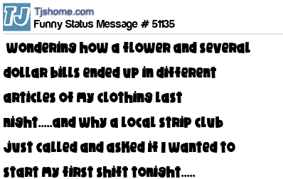 X is wondering how a flower and several dollar bills ended up in different articles of my clothing last night.....and why a local strip club just called and asked if I wanted to start my first shift tonight.....