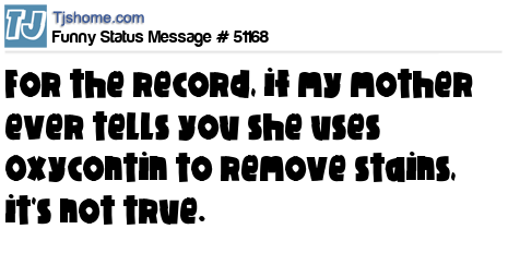X says For the record, if my mother ever tells you she uses Oxycontin to remove stains, it's not true.