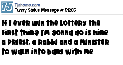 X says if I ever win the lottery the first thing I'm gonna do is hire a priest, a rabbi and a minister to walk into bars with me