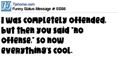 X  I was completely offended, but then you said "no offense," so now everything's cool.