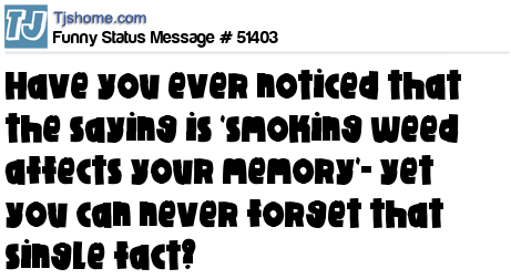 X says have you ever noticed that the saying is 'smoking weed affects your memory'- yet you can never forget that single fact?