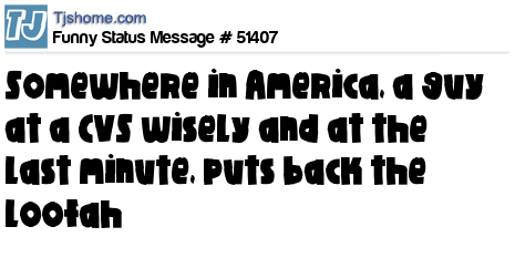 X Somewhere in America, a guy at a CVS wisely and at the last minute, puts back the loofah