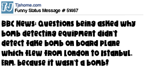 X BBC News: Questions being asked why bomb detecting equipment didn't detect fake bomb on board plane which flew from London to Istanbul. Erm, because it wasn't a bomb?