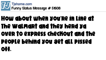 X is How about when you're in line at The Walmart and they herd ya over to express checkout and the people behind you get all pissed off.