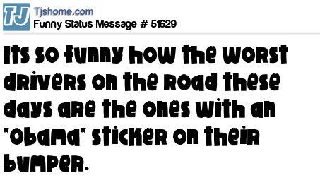 X is Its so funny how the worst drivers on the road these days are the ones with an "Obama" sticker on their bumper.