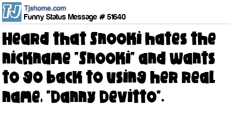 - # 83720 I found out today that Snooki hates the nickname "Snooki" and is planning to go back to using her real name, "Danny DeVito"