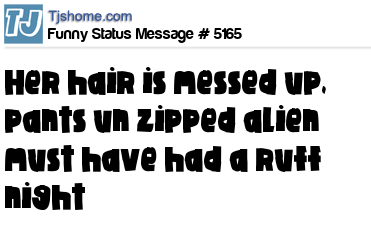 X says her hair is messed up, pants un zipped alien must have had a ruff night