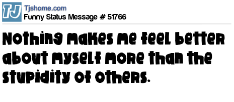 X Nothing makes me feel better about myself more than the stupidity of others.