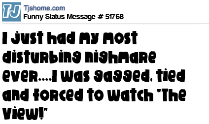 X I just had my most disturbing nighmare ever....I was gagged, tied and forced to watch "The View!"