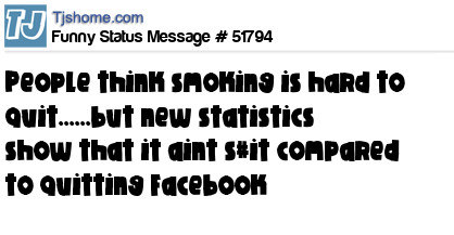 X says People think smoking is hard to quit......but new statistics show that it aint s#it compared to quitting Facebook