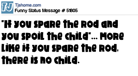 - # 156277 To spare the rod is to spoil the child.....every child needs a whack on the butt everynow and then.