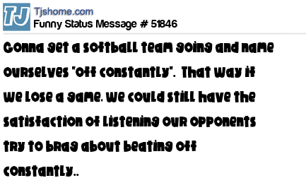 X is Gonna get a softball team going and name ourselves "off constantly". That way if we lose a game, we could still have the satisfaction of listening our opponents try to brag about beating off constantly..