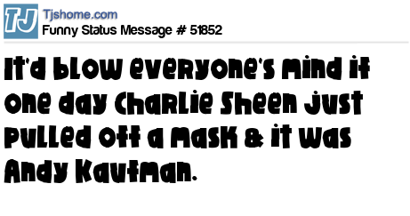 X  It'd blow everyone's mind if one day Charlie Sheen just pulled off a mask & it was Andy Kaufman.